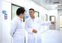 董事长黄旭(左一)在贝特瑞中央研究院调研